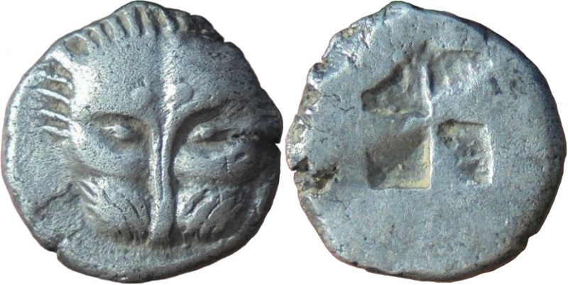 Период чеканки по Анохину В.А. выбран условно. -------------------------- По мнению Терещенко А.Е.: Серия Па–2. Середина–конец последней четверти VI в. до н.э.