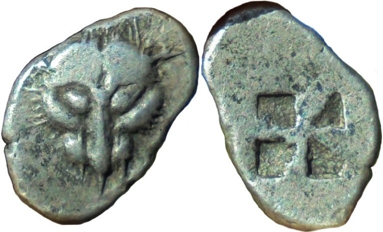 ГлавнаяКаталог монетПаспорт монеты Паспорт монеты: 000-1026-7 Дополнительная информация о монете meshok.netКомментарий:По мнению Терещенко А.Е.: Серия Па–2. Середина–конец последней четверти VI в. до н.э. Номер:000-1026 Количество монет в архиве:10 монет Центр чеканки:Пантикапей Период чеканки: по Анохину В.А. (1986 г.)510 — 500 год до н.э. по Анохину В.А. (2011 г.) по Шелову Д.Б. по Фроловой Н.А. по MacDonald D. по Шонову И.В. Правитель, годы правления: Материал монеты:Серебро Номинал:Триобол Вес монеты:2.63 Диаметр монеты:17.5 Описание аверса:Голова льва в фас Описание реверса:Вдавленный квадрат разделенный на четыре части Номер по каталогу: Анохина В.А. (1986 г.)- Анохина В.А. (2011 г.)- Шелова Д.Б.- Фроловой Н.А. MacDonald D.- Шонова И.В. Архив монет данного типа 000-1026-3 Пантикапей. 510 — 500 год до н.э. Серебро Триобол, вес 2.51 г, d15.0 мм 000-1026-1 Пантикапей. 510 — 500 год до н.э. Серебро Триобол, вес 0.00 г, d0.0 мм 000-1026-2 Пантикапей. 510 — 500 год до н.э. Серебро Триобол, вес 0.00 г, d0.0 мм 000-1026-4 Пантикапей. 510 — 500 год до н.э. Серебро Триобол, вес 2.45 г, d13.0 мм 000-1026-5 Пантикапей. 510 — 500 год до н.э. Серебро Триобол, вес 2.50 г, d15.0 мм 000-1026-6 Пантикапей. 510 — 500 год до н.э. Серебро Триобол, вес 1.84 г, d0.0 мм 000-1026-7 Пантикапей. 510 — 500 год до н.э. Серебро Триобол, вес 2.63 г, d17.5 мм 000-1026-8 Пантикапей. 510 — 500 год до н.э. Серебро Триобол, вес 2.24 г, d13.0 мм 000-1026-9 Пантикапей. 510 — 500 год до н.э. Серебро Триобол, вес 0.52 г, d0.0 мм 000-1026-10 Пантикапей. 510 — 500 год до н.э. Серебро Триобол, вес 2.37 г, d14.0 мм