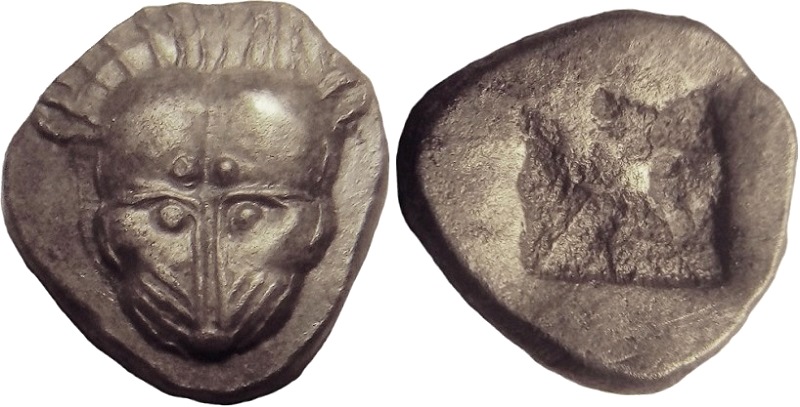 Период чеканки по Анохину В.А. выбран условно. ----------------------------------- По мнению Терещенко А.Е.: Серия Па–1. Конец третьей – середина последней четверти VI в. до н.э.