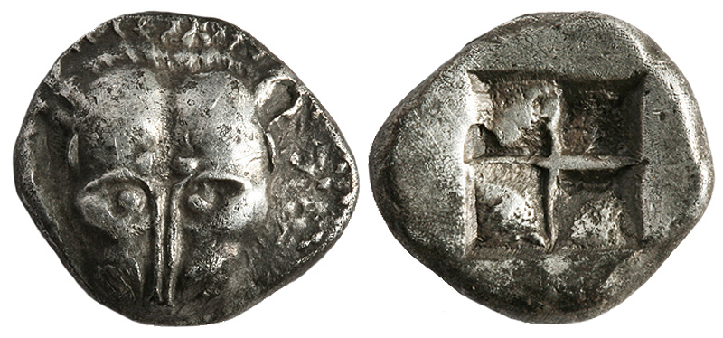 Период чеканки по Анохину В.А. выбран условно. ----------------------------------- По мнению Терещенко А.Е.: Серия Па–1. Конец третьей – середина последней четверти VI в. до н.э.
