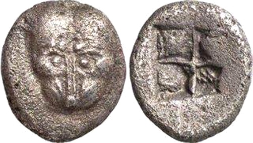 Период чеканки по Анохину В.А. выбран условно. ----------------------------------- По мнению Терещенко А.Е.: Серия Па–1. Конец третьей – середина последней четверти VI в. до н.э.