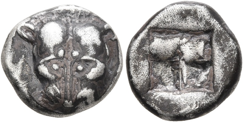 Период чеканки по Анохину В.А. выбран условно. ----------------------------------- По мнению Терещенко А.Е.: Серия Па–1. Конец третьей – середина последней четверти VI в. до н.э.