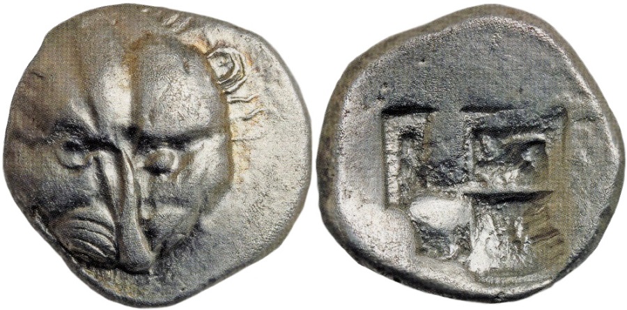 Период чеканки по Анохину В.А. выбран условно. ----------------------------------- По мнению Терещенко А.Е.: Серия Па–1. Конец третьей – середина последней четверти VI в. до н.э.