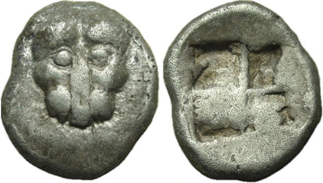 Период чеканки по Анохину В.А. выбран условно. ------------------------- По мнению Терещенко А.Е.: Серия Па–2. Середина–конец последней четверти VI в. до н.э.