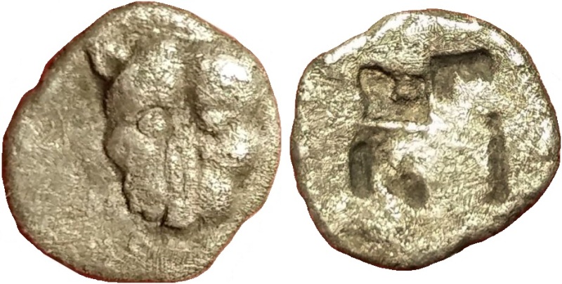 Период чеканки по Анохину В.А. выбран условно. ------------------------- По мнению Терещенко А.Е.: Серия Па–2. Середина–конец последней четверти VI в. до н.э.