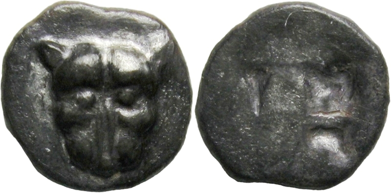 Период чеканки по Анохину В.А. выбран условно. ------------------------- По мнению Терещенко А.Е.: Серия Па–2. Середина–конец последней четверти VI в. до н.э.