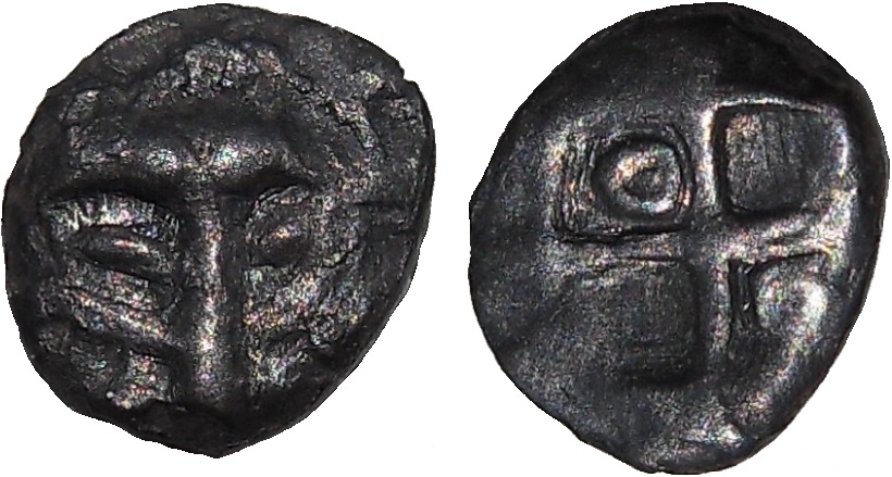 Период чеканки по Анохину В.А. выбран условно. Монеты к чеканке храма Аполлона отнесены условно. --------------------------------- По мнению Терещенко А.Е.: Серия Па – 5. Конец 80–х гг. – конец первой четверти V в. до н.э.