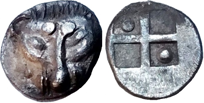 Период чеканки по Анохину В.А. выбран условно. Монеты к чеканке храма Аполлона отнесены условно. --------------------------------- По мнению Терещенко А.Е.: Серия Па – 5. Конец 80–х гг. – конец первой четверти V в. до н.э.