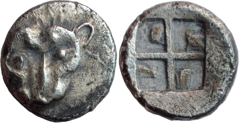 Период чеканки по Анохину В.А. выбран условно. ------------------------------- По мнению Терещенко А.Е.: Серия Па–3. Конец VI в. до н.э. – начало второго десятилетия V в. до н.э..