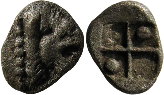 ГлавнаяКаталог монетПаспорт монеты Паспорт монеты: 000-2124-5 Дополнительная информация о монете Место находки - Крым, Ленинский р-он, окрестности с.Огоньки. ----------- www.staraya-moneta.ruКомментарий:Период чеканки по Анохину В.А., номинал и место чеканки выбраны условно. Номер:000-2124 Количество монет в архиве:8 монет Центр чеканки:Неизвестный центр Период чеканки: по Анохину В.А. (1986 г.)490 — 470 год до н.э. по Анохину В.А. (2011 г.) по Шелову Д.Б. по Фроловой Н.А. по MacDonald D. по Шонову И.В.490 — 480 год до н.э. Правитель, годы правления: Материал монеты:Серебро Номинал:Тетартеморий Вес монеты:0.08 Диаметр монеты:4.5 Описание аверса:Голова льва вправо с открытой пастью и высунутым языком Описание реверса:Вдавленный квадрат, разделенный на четыре части, в двух из них точки Номер по каталогу: Анохина В.А. (1986 г.)- Анохина В.А. (2011 г.) Шелова Д.Б.- Фроловой Н.А. MacDonald D.- Шонова И.В.Таб. II, № 30 Архив монет данного типа 000-2124-1 Неизвестный центр. 490 — 470 год до н.э. Серебро Тетартеморий, вес 0.07 г, d5.0 мм 000-2124-2 Неизвестный центр. 490 — 470 год до н.э. Серебро Тетартеморий, вес 0.06 г, d3.5 мм 000-2124-3 Неизвестный центр. 490 — 470 год до н.э. Серебро Тетартеморий, вес 0.08 г, d0.0 мм 000-2124-4 Неизвестный центр. 490 — 470 год до н.э. Серебро Тетартеморий, вес 0.11 г, d5.0 мм 000-2124-5 Неизвестный центр. 490 — 470 год до н.э. Серебро Тетартеморий, вес 0.08 г, d4.5 мм 000-2124-6 Неизвестный центр. 490 — 470 год до н.э. Серебро Тетартеморий, вес 0.11 г, d5.0 мм