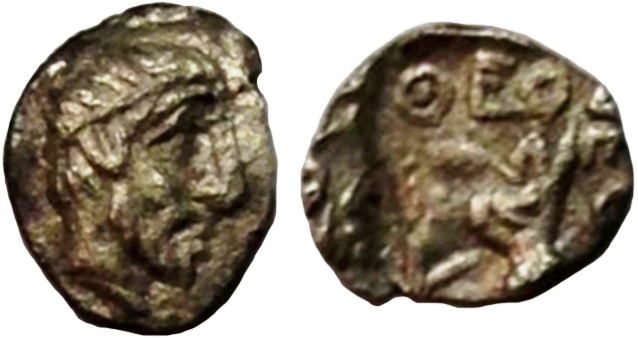 ГлавнаяКаталог монетПаспорт монеты Монета: 000-2209 Дополнительная информация о монете Монета опубликована: Шонов И.В. "Монетная чеканка правителей Боспора VI-I вв. до н.э". 2019г. № 95. Номер:000-2209 Количество монет в архиве:1 монет Центр чеканки:Феодосия Период чеканки: по Анохину В.А. (1986 г.)425 — 415 год до н.э. по Анохину В.А. (2011 г.) по Шелову Д.Б. по Фроловой Н.А. по MacDonald D. по Шонову И.В.438 — 437 год до н.э. Правитель, годы правления: Материал монеты:Серебро Номинал:Тетартеморий Вес монеты:0.05 Диаметр монеты:5.0 Описание аверса:Голова бородатого мужчины в повязке вправо Описание реверса:Во вдавленном квадрате голова быка вправо, сверху и справа головы ΘΕΟΔ-ΕΟΣ Номер по каталогу: Анохина В.А. (1986 г.)- Анохина В.А. (2011 г.)- Шелова Д.Б.- Фроловой Н.А.- MacDonald D.- Шонова И.В.Таб. VIII, № 95 Архив монет данного типа 000-2209-1 Феодосия. 425 — 415 год до н.э. Серебро Тетартеморий, вес 0.05 г, d5.0 мм