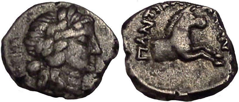 ГлавнаяКаталог монетПаспорт монеты Монета: 000-3380 Дополнительная информация о монете Данная монета опубликована: И.В.Шонов ‘‘Монетная чеканка правителей Боспора Vl-l вв. до н.э.’’ 2019г. Таблица XXXII, № 279.Комментарий:Период чеканки согласно Анохина В.А. (1986 г.) выбран условно. Номер:000-3380 Количество монет в архиве:1 монет Центр чеканки:Пантикапей Период чеканки: по Анохину В.А. (1986 г.)150 — 140 год до н.э. по Анохину В.А. (2011 г.) по Шелову Д.Б. по Фроловой Н.А. по MacDonald D. по Шонову И.В.202 — 190 год до н.э. Правитель, годы правления:Перисад IV, 155-125 гг до н.э. Материал монеты:Серебро Номинал:Драхма Вес монеты:5.01 Диаметр монеты:18.0 Описание аверса:Голова Аполлона в венке вправо Описание реверса:ПАNTIKAПАITON. Протома скачущего коня вправо Номер по каталогу: Анохина В.А. (1986 г.)- Анохина В.А. (2011 г.)- Шелова Д.Б.- Фроловой Н.А.- MacDonald D.- Шонова И.В.Таб. XXXII, № 279 Архив монет данного типа 000-3380-1 Пантикапей. 150 — 140 год до н.э. Серебро Драхма, вес 5.01 г, d18.0 мм