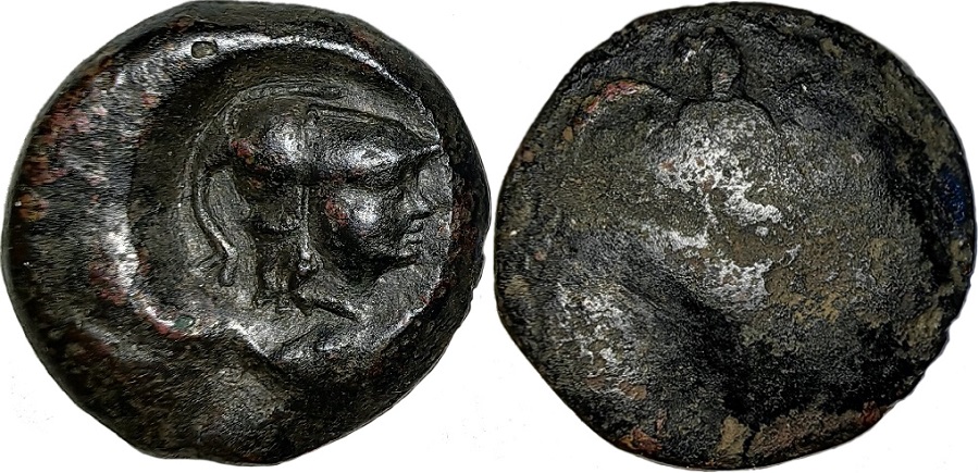 ГлавнаяКаталог монетПаспорт монеты Монета: 000-3406 Дополнительная информация о монете staraya-moneta.ru ----------- meshok.netКомментарий:Номер и период чеканки по Анохину В.А. (1986 г.) даны условно. Номер:000-3406 Количество монет в архиве:1 монет Центр чеканки:Пантикапей Период чеканки: по Анохину В.А. (1986 г.)210 — 200 год до н.э. по Анохину В.А. (2011 г.) по Шелову Д.Б. по Фроловой Н.А. по MacDonald D. по Шонову И.В. Правитель, годы правления:Спарток V, 205-185 гг до н. э. Материал монеты:Медь Номинал:Обол Вес монеты:5.40 Диаметр монеты:20.0 Описание аверса:Голова Аполлона в венке вправо., надчекан "голова Афины" Описание реверса:ПАN. Орел с расправленными крыльями прямо. Номер по каталогу: Анохина В.А. (1986 г.)151 Анохина В.А. (2011 г.)- Шелова Д.Б.- Фроловой Н.А.- MacDonald D.- Шонова И.В.- Архив монет данного типа 000-3406-1 Пантикапей. 210 — 200 год до н.э. Медь Обол, вес 5.40 г, d20.0 мм