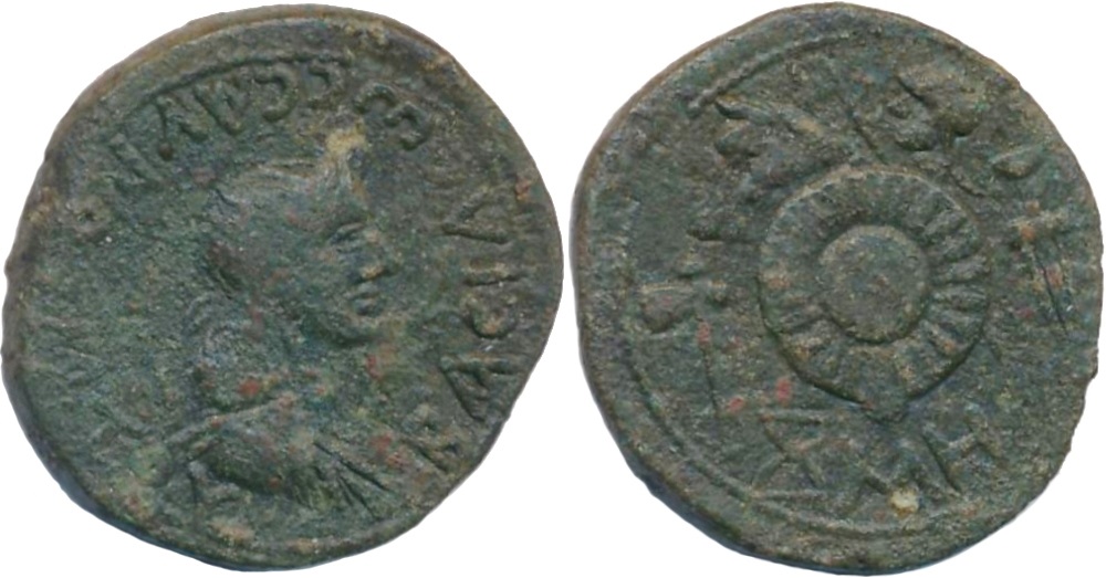ГлавнаяКаталог монетПаспорт монеты Паспорт монеты: 000-4632-21 Дополнительная информация о монете Конрос. Аукцион 1057. Лот 805. Номер:000-4632 Количество монет в архиве:21 монет Центр чеканки:Пантикапей Период чеканки: по Анохину В.А. (1986 г.)117 — 123 год н.э. по Анохину В.А. (2011 г.)116 — 117 год н.э. по Шелову Д.Б. по Фроловой Н.А.108 — 115 год н.э. по MacDonald D. по Шонову И.В. Правитель, годы правления:Савромат I, 93/94-123/124 гг н.э. Материал монеты:Медь Номинал:Сестерций Вес монеты:10.19 Диаметр монеты:0.0 Описание аверса:ΒΑCΙΛΕωC CΑΥΡΟΜΑΤΟΥ. Бюст царя вправо Описание реверса:Круглый щит и копье, слева голова коня, топор и курульное кресло, справа голова в шлеме и меч, внизу ΜΗ Номер по каталогу: Анохина В.А. (1986 г.)- Анохина В.А. (2011 г.)1593 Шелова Д.Б. Фроловой Н.А.XLVII,12 MacDonald D. Шонова И.В. Архив монет данного типа 000-4632-3 Пантикапей. 117 — 123 год н.э. Медь Сестерций, вес 13.39 г, d28.0 мм 000-4632-1 Пантикапей. 117 — 123 год н.э. Медь Сестерций, вес 0.00 г, d0.0 мм 000-4632-4 Пантикапей. 117 — 123 год н.э. Медь Сестерций, вес 0.00 г, d0.0 мм 000-4632-5 Пантикапей. 117 — 123 год н.э. Медь Сестерций, вес 7.20 г, d24.0 мм 000-4632-6 Пантикапей. 117 — 123 год н.э. Медь Сестерций, вес 0.00 г, d0.0 мм 000-4632-7 Пантикапей. 117 — 123 год н.э. Медь Сестерций, вес 0.00 г, d0.0 мм 000-4632-8 Пантикапей. 117 — 123 год н.э. Медь Сестерций, вес 0.00 г, d0.0 мм 000-4632-9 Пантикапей. 117 — 123 год н.э. Медь Сестерций, вес 12.84 г, d0.0 мм 000-4632-10 Пантикапей. 117 — 123 год н.э. Медь Сестерций, вес 0.00 г, d0.0 мм 000-4632-11 Пантикапей. 117 — 123 год н.э. Медь Сестерций, вес 0.00 г, d0.0 мм 000-4632-12 Пантикапей. 117 — 123 год н.э. Медь Сестерций, вес 0.00 г, d0.0 мм 000-4632-13 Пантикапей. 117 — 123 год н.э. Медь Сестерций, вес 0.00 г, d0.0 мм 000-4632-14 Пантикапей. 117 — 123 год н.э. Медь Сестерций, вес 13.80 г, d26.0 мм 000-4632-15 Пантикапей. 117 — 123 год н.э. Медь Сестерций, вес 0.00 г, d0.0 мм 000-4632-16 Пантикапей. 117 — 123 год н.э. Медь Сестерций, вес 0.00 г, d28.5 мм 000-4632-17 Пантикапей. 117 — 123 год н.э. Медь Сестерций, вес 0.00 г, d26.0 мм 000-4632-18 Пантикапей. 117 — 123 год н.э. Медь Сестерций, вес 17.08 г, d27.3 мм 000-4632-19 Пантикапей. 117 — 123 год н.э. Медь Сестерций, вес 9.64 г, d0.0 мм 000-4632-20 Пантикапей. 117 — 123 год н.э. Медь Сестерций, вес 0.00 г, d0.0 мм 000-4632-21 Пантикапей. 117 — 123 год н.э. Медь Сестерций, вес 10.19 г, d0.0 мм 000-4632-22 Пантикапей. 117 — 123 год н.э. Медь Сестерций, вес 10.40 г, d24.0 мм