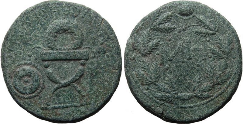 ГлавнаяКаталог монетПаспорт монеты Паспорт монеты: 000-4742-4 Дополнительная информация о монете Частная коллекция. Номер:000-4742 Количество монет в архиве:3 монет Центр чеканки:Пантикапей Период чеканки: по Анохину В.А. (1986 г.)86 — 92 год н.э. по Анохину В.А. (2011 г.) по Шелову Д.Б. по Фроловой Н.А. по MacDonald D. по Шонову И.В. Правитель, годы правления:Рискупорид I, 69-91/92 гг н.э. Материал монеты:Медь Номинал:Сестерций Вес монеты:9.61 Диаметр монеты:25.5 Описание аверса:ΤΙ ΙΟΥΛΙΟC ΒΑCΙΛΕωC ΡΗСΚΟΥΠΟΡΙΔΟС. Курульное кресло с венком, слева щит и копье,справа скипетр Описание реверса:Венок, в нем ΜΗ Номер по каталогу: Анохина В.А. (1986 г.)- Анохина В.А. (2011 г.)- Шелова Д.Б. Фроловой Н.А. MacDonald D.- Шонова И.В.- Архив монет данного типа 000-4742-3 Пантикапей. 86 — 92 год н.э. Медь Сестерций, вес 15.68 г, d29.0 мм 000-4742-2 Пантикапей. 86 — 92 год н.э. Медь Сестерций, вес 0.00 г, d27.0 мм 000-4742-4 Пантикапей. 86 — 92 год н.э. Медь Сестерций, вес 9.61 г, d25.5 мм