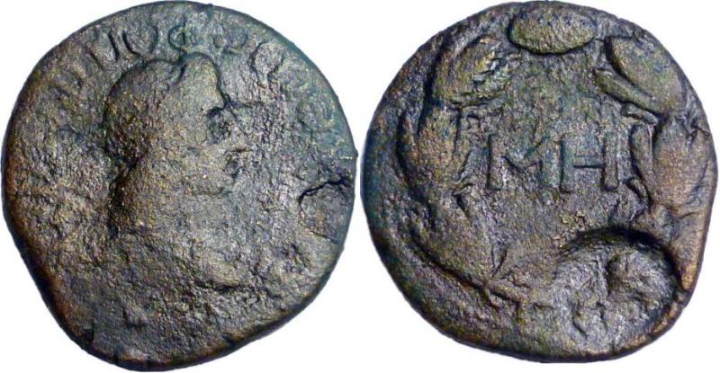 ΒΑCΙΛΕωC ΡΟΙΜΗΤΑΛΚΟΥ. Бюст царя вправо. Надчеканка — голова Септимия Севера
