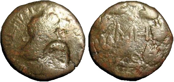 Монета отчеканена при Реметалке и принадлежит типу 519-4421, но из-за позднего наложения надчекана "голова Септимия Севера" данная монета нами включена в период чеканки Савромата II. Номер по каталогу Анохина В.А. 1986г. дан справочно.
