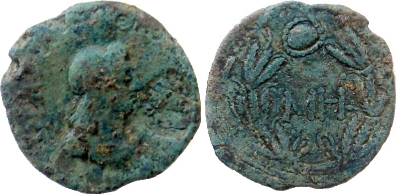 ΒΑCΙΛΕωC ΡΟΙΜΗΤΑΛΚΟΥ. Бюст царя вправо. Надчеканка — голова Септимия Севера