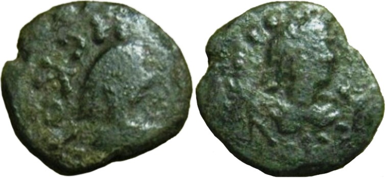 Лицевой штемпель использован при чеканке типа 770-5140. Дата ΛΙΧ вместо АΙΧ. ----------- Данный тип подражания опубликован: Юшков В.Н. "Боспорские монеты от Котиса III до Рискупорида V". 2010г. №255 ----------- В основе датировки положена дата указанная на статере. Администрация каталога не исключает вероятность выпуска данных монет в более позднее время.