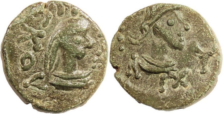 Лицевой штемпель использован при чеканке типа 770-5140. Дата ΛΙΧ вместо АΙΧ. ----------- Данный тип подражания опубликован: Юшков В.Н. "Боспорские монеты от Котиса III до Рискупорида V". 2010г. №255 ----------- В основе датировки положена дата указанная на статере. Администрация каталога не исключает вероятность выпуска данных монет в более позднее время.