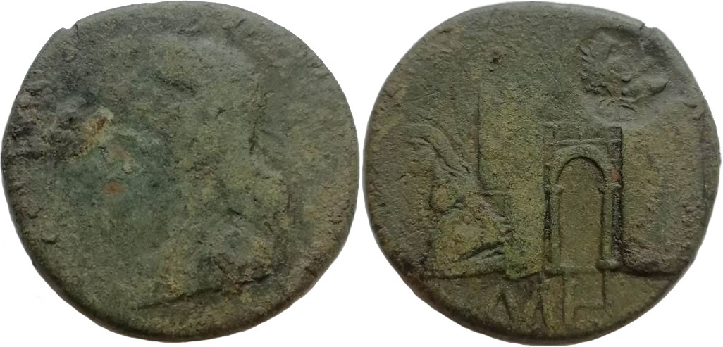 Монета отчеканенена при Савромате I и принадлежит типу 443-4536, но из-за позднего наложения надчекана "голова Септимия Севера" данная монета нами включена в период чеканки Савромата II. Номер по каталогу Анохина В.А. 1986г. дан справочно.