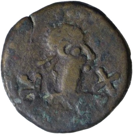 Бюст императора вправо, по сторонам год ГK-X (623 г. б. э.)