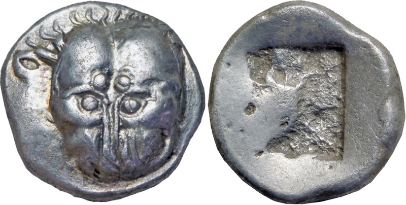 Монета опубликована: Фанагория. Результаты археологических исследований. Том 8. 2020г. В.Д. Кузнецов, А.Г. Абрамзон "Клад позднеархаических монет из Фанагории". Ил.14, №16. --------- Место хранения: Государственный историко-археологический музей-заповедник "Фанагория". Номер в Госкаталоге: 27565522 Номер по КП (ГИК): ФМ-КП 86/16 Инвентарный номер: Н 1448