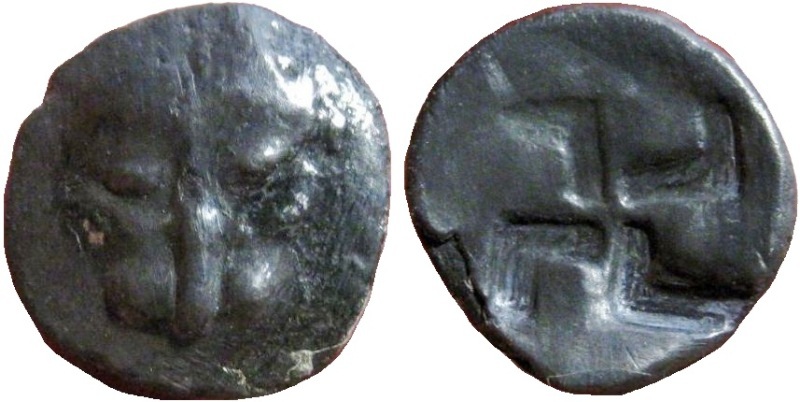 При чеканке некоторых монет данного типа использован лицевой штемпель 015-1018. -------------- По мнению Терещенко А.Е.: Серия Па–3. Конец VI в. до н.э. – начало второго десятилетия V в. до н.э.