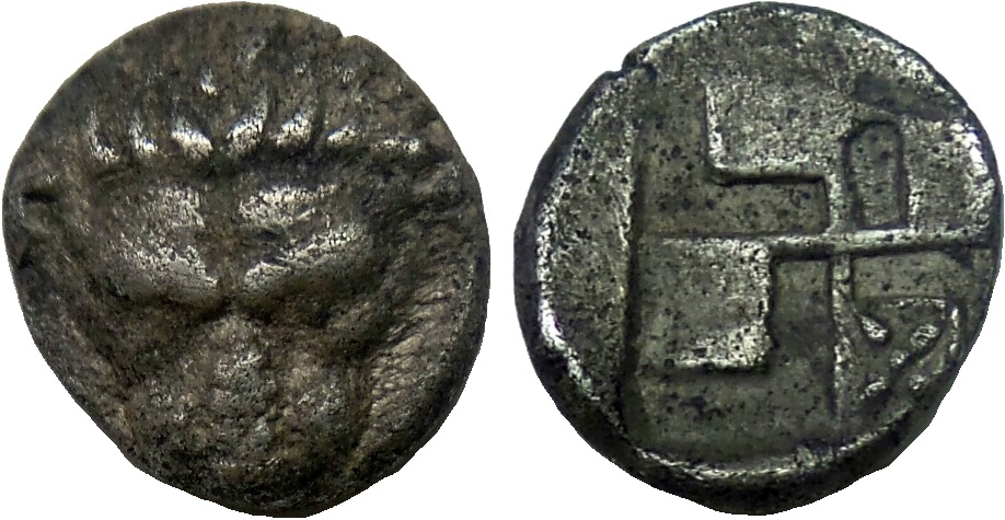 По мнению Терещенко А.Е.: Cерия Па–6. Первая половина второй четверти V в. до н.э. ------------------------ Некоторые исследователи (Н.А. Фролова и В.Л. Строкин) считают подобные монеты с одной 4-х лучевой звездой на реверсе отдельным типом. Администрации каталога-архива после сравнительного анализа лицевых штемпелей монет несущих на реверсе по одной звезде и фиксации аналогичных лицевых штемпелей на монетах с двумя звездами пришла к выводу о едином типе монет. Отсутствие второй звезды объясняется непрочеканом, либо износом (возможно засорением) штемпеля.