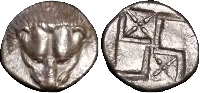 - По мнению Терещенко А.Е.: Cерия Па–6. Первая половина второй четверти V в. до н.э. ------------------------ Некоторые исследователи (Н.А. Фролова и В.Л. Строкин) считают подобные монеты с одной 4-х лучевой звездой на реверсе отдельным типом. Администрации каталога-архива после сравнительного анализа лицевых штемпелей монет несущих на реверсе по одной звезде и фиксации аналогичных лицевых штемпелей на монетах с двумя звездами пришла к выводу о едином типе монет. Отсутствие второй звезды объясняется непрочеканом (возможно засорением), либо износом штемпеля.