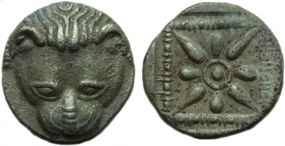Т.к. при построении каталога-архива за основу взят каталог Анохина В.А. 1986г., в котором данный тип монет отнесён к чеканке храма Аполлона, администрация сайта данные монеты также включила к чекану этого центра. Но, мы ни в кой мере не хотим навязывать посетителям нашего ресурса подобную точку зрения. Сохраняя нейтралитет в данном вопросе, считаем необходимым перечислить основные гипотезы по локализации цента эмиссии: - Чекан храмом Аполлона монеты для своих нужд. - Чекан конфедерации боспорских городов под эгидой храма Аполлона. - Чеканка автономного эмиссионного центра.