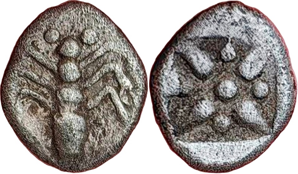 Т.к. при построении каталога-архива за основу взят каталог Анохина В.А. 1986г., в котором данный тип монет отнесён к чеканке храма Аполлона, администрация сайта данные монеты также включила к чекану этого центра. Но, мы ни в кой мере не хотим навязывать посетителям нашего ресурса подобную точку зрения. Сохраняя нейтралитет в данном вопросе, считаем необходимым перечислить основные гипотезы по локализации цента эмиссии: - Чекан храмом Аполлона монеты для своих нужд. - Чекан конфедерации боспорских городов под эгидой храма Аполлона. - Чеканка автономного эмиссионного центра.