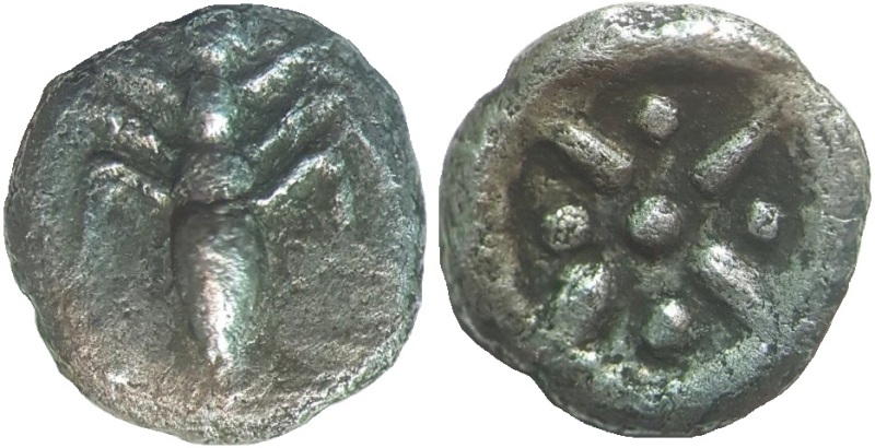 Т.к. при построении каталога-архива за основу взят каталог Анохина В.А. 1986г., в котором данный тип монет отнесён к чеканке храма Аполлона, администрация сайта данные монеты также включила к чекану этого центра. Но, мы ни в кой мере не хотим навязывать посетителям нашего ресурса подобную точку зрения. Сохраняя нейтралитет в данном вопросе, считаем необходимым перечислить основные гипотезы по локализации цента эмиссии: - Чекан храмом Аполлона монеты для своих нужд. - Чекан конфедерации боспорских городов под эгидой храма Аполлона. - Чеканка автономного эмиссионного центра.