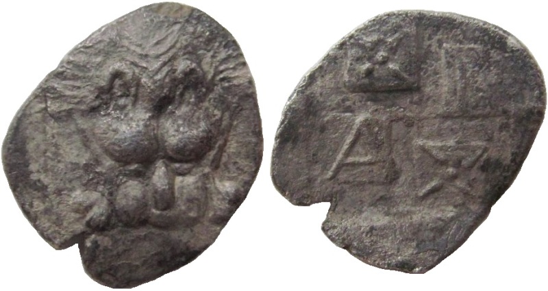 - Т.к. при построении каталога-архива за основу взят каталог Анохина В.А. 1986г., в котором данный тип монет отнесён к чеканке храма Аполлона, администрация сайта данные монеты также включила к чекану этого центра. Но, мы ни в кой мере не хотим навязывать посетителям нашего ресурса подобную точку зрения. Сохраняя нейтралитет в данном вопросе, считаем необходимым перечислить основные гипотезы по локализации цента эмиссии: - Чекан храмом Аполлона монеты для своих нужд. - Чекан конфедерации боспорских городов под эгидой храма Аполлона. - Чеканка автономного эмиссионного центра.
