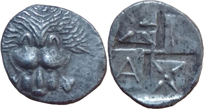 Т.к. при построении каталога-архива за основу взят каталог Анохина В.А. 1986г., в котором данный тип монет отнесён к чеканке храма Аполлона, администрация сайта данные монеты также включила к чекану этого центра. Но, мы ни в кой мере не хотим навязывать посетителям нашего ресурса подобную точку зрения. Сохраняя нейтралитет в данном вопросе, считаем необходимым перечислить основные гипотезы по локализации цента эмиссии: - Чекан храмом Аполлона монеты для своих нужд. - Чекан конфедерации боспорских городов под эгидой храма Аполлона. - Чеканка автономного эмиссионного центра.
