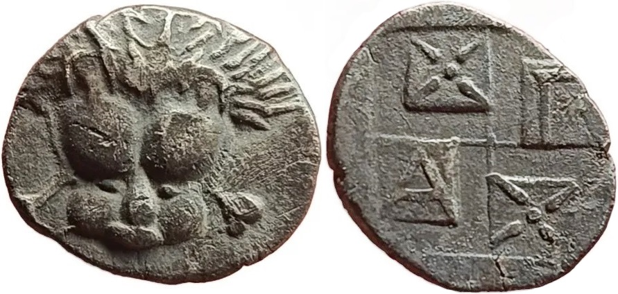 Т.к. при построении каталога-архива за основу взят каталог Анохина В.А. 1986г., в котором данный тип монет отнесён к чеканке храма Аполлона, администрация сайта данные монеты также включила к чекану этого центра. Но, мы ни в кой мере не хотим навязывать посетителям нашего ресурса подобную точку зрения. Сохраняя нейтралитет в данном вопросе, считаем необходимым перечислить основные гипотезы по локализации цента эмиссии: - Чекан храмом Аполлона монеты для своих нужд. - Чекан конфедерации боспорских городов под эгидой храма Аполлона. - Чеканка автономного эмиссионного центра.