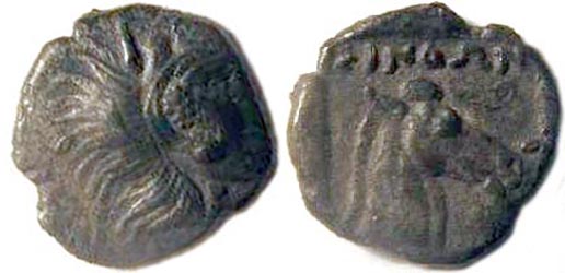 - Вдавленный квадрат с головой коня вправо. Вверху надпись ΣINΔΩN