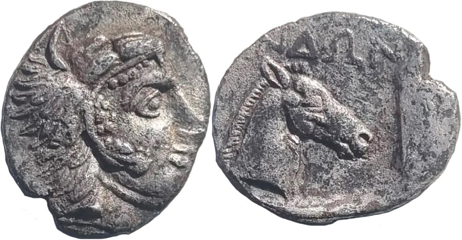 - Вдавленный квадрат с головой коня вправо. Вверху надпись ΣINΔΩN