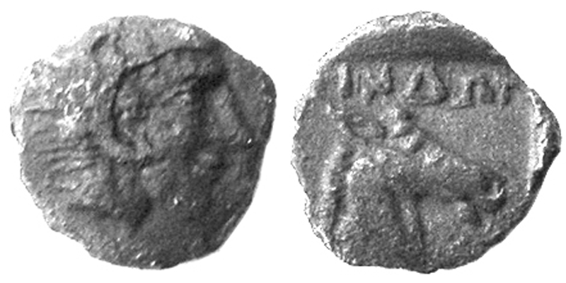 Вдавленный квадрат с головой коня вправо. Вверху надпись ΣINΔΩN