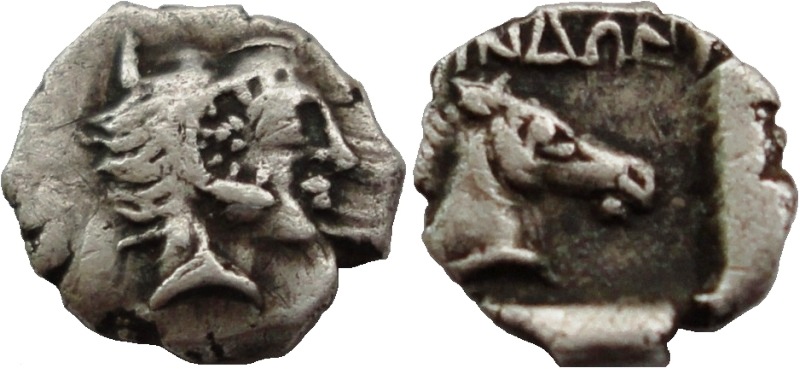- Вдавленный квадрат с головой коня вправо. Вверху надпись ΣINΔΩN