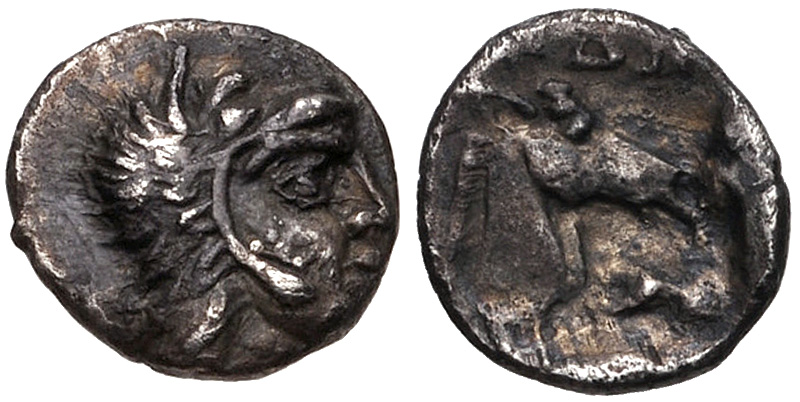 Вдавленный квадрат с головой коня вправо. Вверху надпись ΣINΔΩN