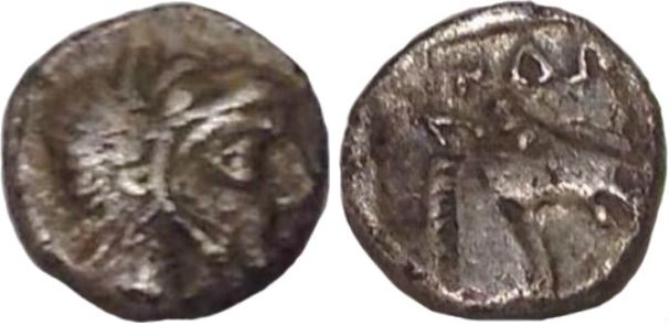 Вдавленный квадрат с головой коня вправо. Вверху надпись ΣINΔΩN