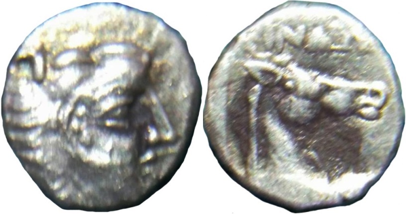 Вдавленный квадрат с головой коня вправо. Вверху надпись ΣINΔΩN