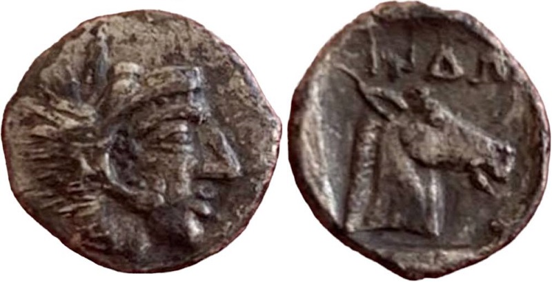 Вдавленный квадрат с головой коня вправо. Вверху надпись ΣINΔΩN