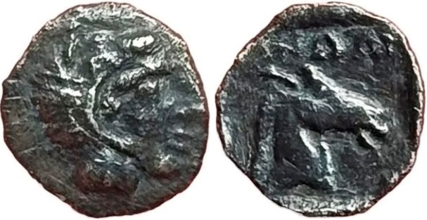 Вдавленный квадрат с головой коня вправо. Вверху надпись ΣINΔΩN