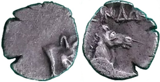 Вдавленный квадрат с головой коня вправо. Вверху надпись ΣINΔΩN