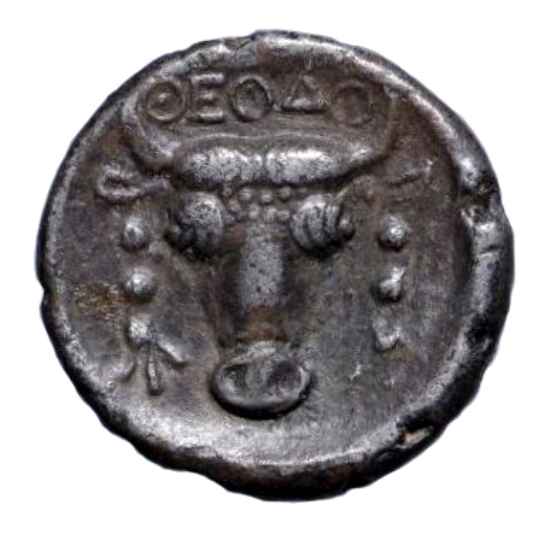 ГлавнаяКаталог монетПаспорт монеты Паспорт монеты: 073-2051-4 Дополнительная информация о монете Государственный исторический музей Номер в Госкаталоге: 64658638 Номер по КП (ГИК): ГИМ 91539/17005 Инвентарный номер: КР ОН 450587 Номер:073-2051 Количество монет в архиве:4 монет Центр чеканки:Феодосия Период чеканки: по Анохину В.А. (1986 г.)403 — 393 год до н.э. по Анохину В.А. (2011 г.)395 — 385 год до н.э. по Шелову Д.Б. по Фроловой Н.А. по MacDonald D.400 — 375 год до н.э. по Шонову И.В.392 — 388 год до н.э. Правитель, годы правления: Материал монеты:Серебро Номинал:Драхма Вес монеты:0.00 Диаметр монеты:18.0 Описание аверса:Голова Ареса влево Описание реверса:Голова быка в фас украшенная гирляндами (тениями) во вдавленном квадрате. Между рогами надпись ΘΕΟΔΟ Номер по каталогу: Анохина В.А. (1986 г.)73 Анохина В.А. (2011 г.)936 Шелова Д.Б.- Фроловой Н.А. MacDonald D.90 Шонова И.В.Таб. X, № 108 Архив монет данного типа 073-2051-2 Феодосия. 403 — 393 год до н.э. Серебро Драхма, вес 5.15 г, d18.0 мм 073-2051-1 Феодосия. 403 — 393 год до н.э. Серебро Драхма, вес 0.00 г, d17.0 мм 073-2051-3 Феодосия. 403 — 393 год до н.э. Серебро Драхма, вес 0.00 г, d0.0 мм 073-2051-4 Феодосия. 403 — 393 год до н.э. Серебро Драхма, вес 0.00 г, d18.0 мм