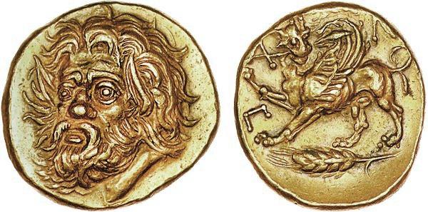 ПАN. Грифон с копьем в пасти влево, внизу колос