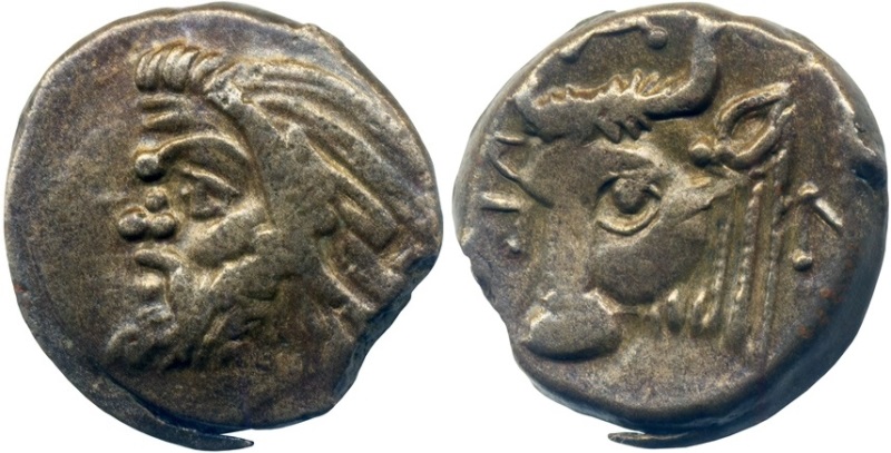 - Голова быка, повернутая на 3/4 влево по сторонам ПАN