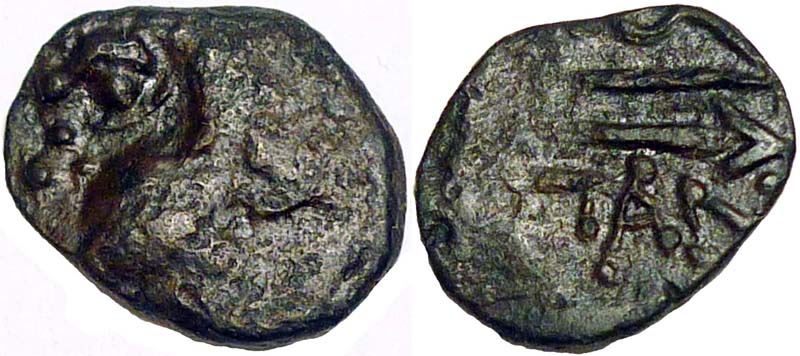 ГлавнаяКаталог монетПаспорт монеты Паспорт монеты: 133-3120-3 Комментарий:Финальная стадия деградации типа. Очень маленький размер и вес. Номер:133-3120 Количество монет в архиве:5 монет Центр чеканки:Пантикапей Период чеканки: по Анохину В.А. (1986 г.)275 — 245 год до н.э. по Анохину В.А. (2011 г.) по Шелову Д.Б.300 — 250 год до н.э. по Фроловой Н.А. по MacDonald D.304 — 250 год до н.э. по Шонову И.В. Правитель, годы правления:Перисад II, 283-245 гг до н. э. Материал монеты:Медь Номинал:Обол Вес монеты:1.00 Диаметр монеты:12.0 Описание аверса:Голова безбородого Сатира в венке влево Описание реверса:ПАN. Лук, под ним стрела вправо Номер по каталогу: Анохина В.А. (1986 г.)133 Анохина В.А. (2011 г.) Шелова Д.Б.66 Фроловой Н.А. MacDonald D.116/2 Шонова И.В. Архив монет данного типа 133-3120-1 Пантикапей. 275 — 245 год до н.э. Медь Обол, вес 0.80 г, d11.0 мм 133-3120-2 Пантикапей. 275 — 245 год до н.э. Медь Обол, вес 1.10 г, d13.0 мм 133-3120-3 Пантикапей. 275 — 245 год до н.э. Медь Обол, вес 1.00 г, d12.0 мм 133-3120-4 Пантикапей. 275 — 245 год до н.э. Медь Обол, вес 1.53 г, d13.0 мм 133-3120-5 Пантикапей. 275 — 245 год до н.э. Медь Обол, вес 0.61 г, d10.2 мм
